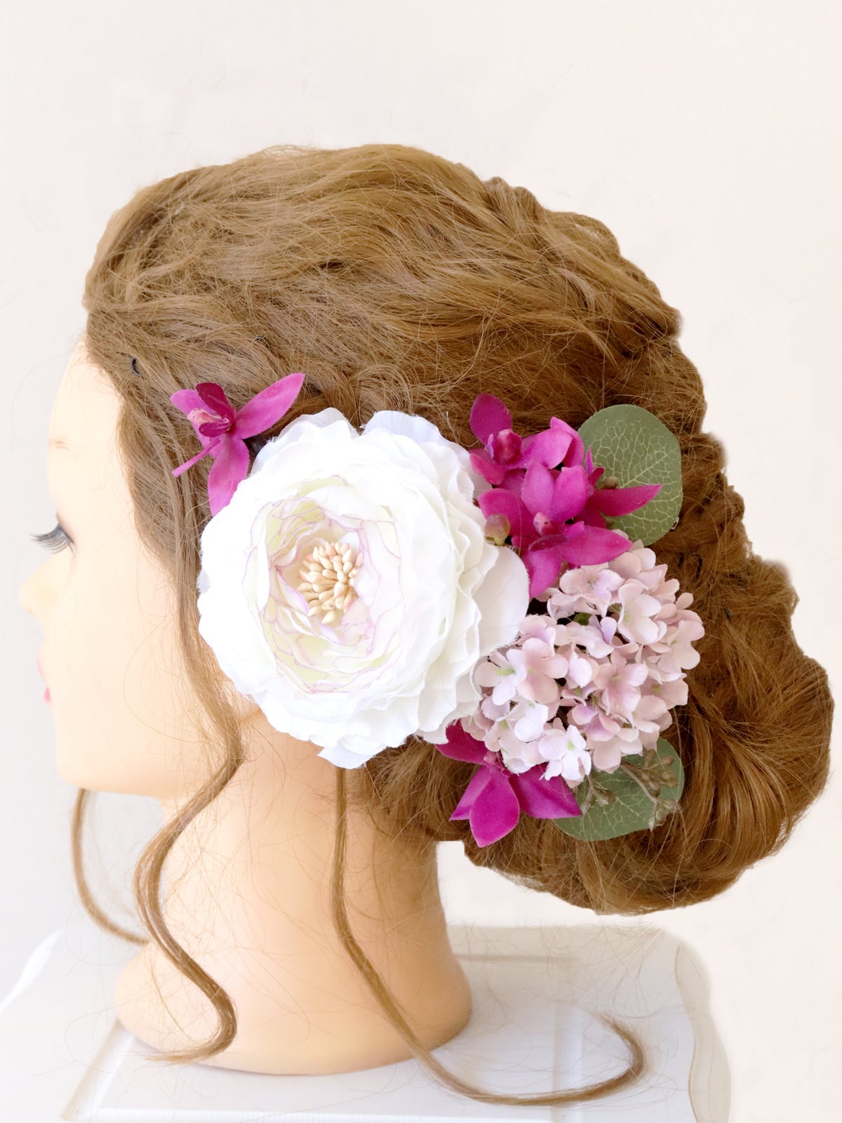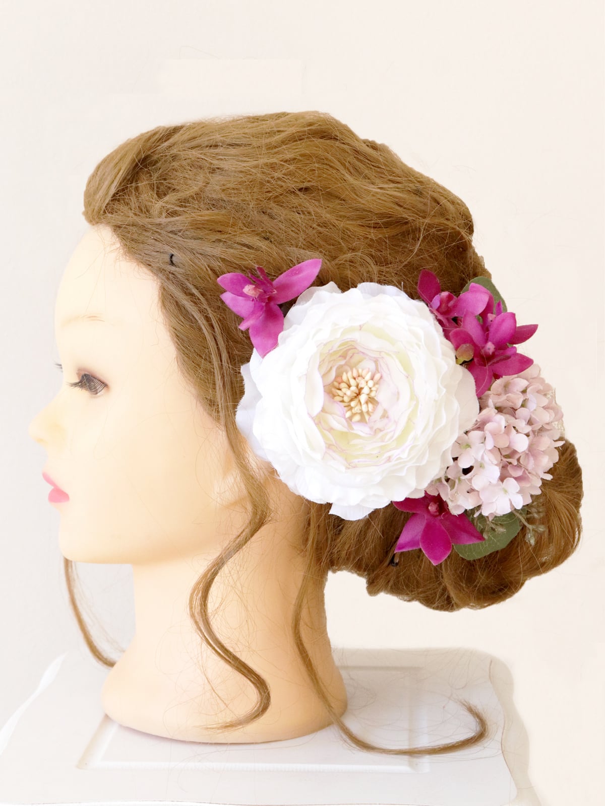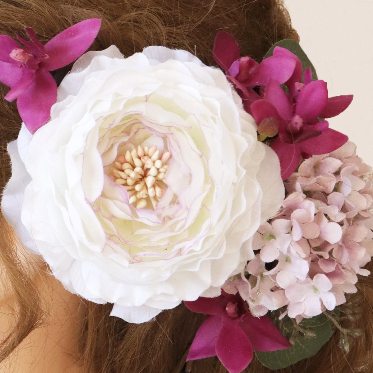 ヘアスタイルに合わせてお花の向きを変えたり、添わせたりが簡単にできるようになっています。