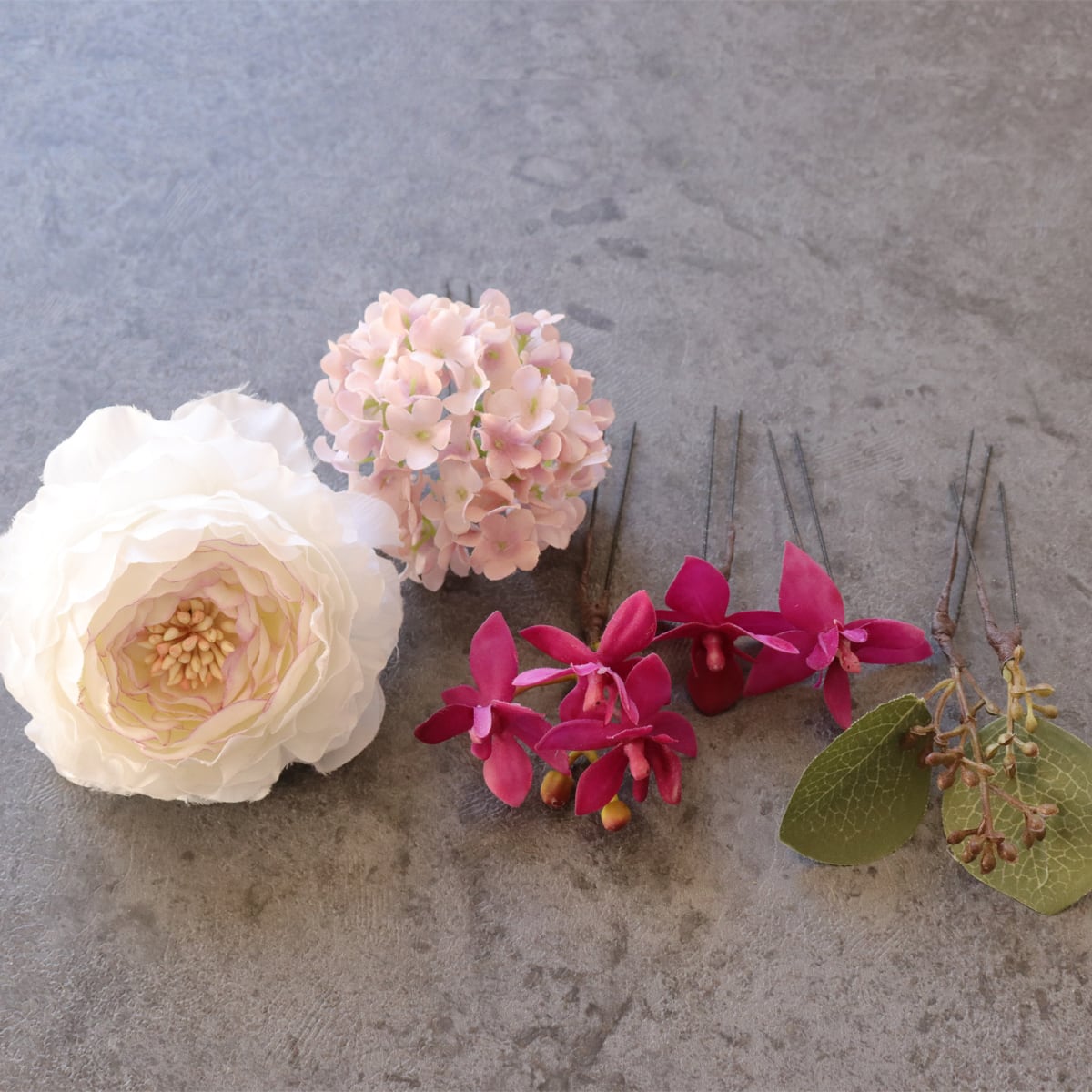 お花は1輪ずつUピン仕上げなので、取り付けも簡単です。