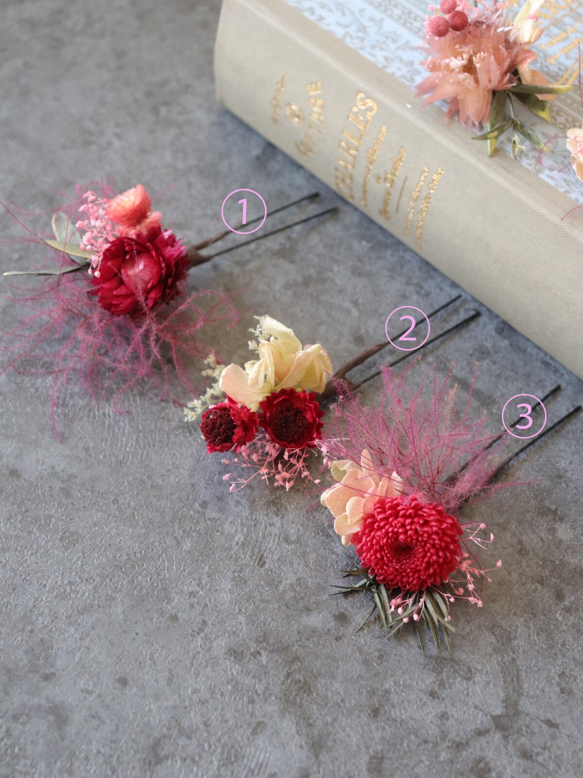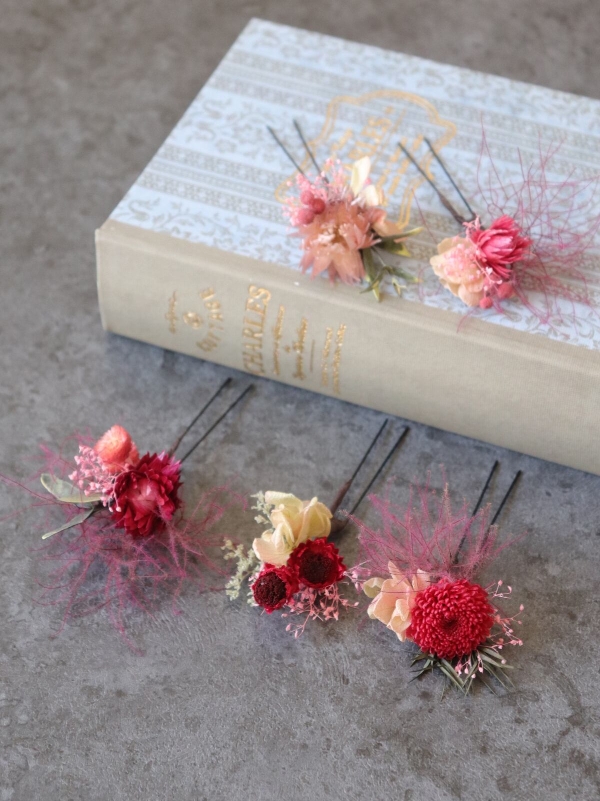 美しいコラボレーションが、オリジナルな髪飾りを作り出します。