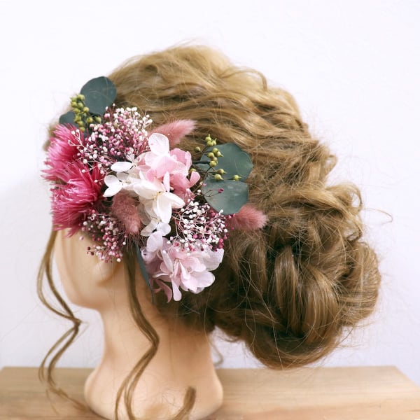【プリザ・ドライ】ベリーピンクのお花のヘッドドレス