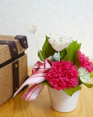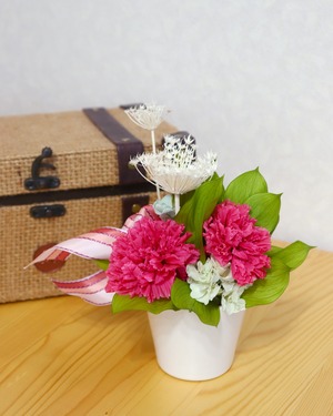 ピンクのカーネーションが可愛らしいポットアレンジ