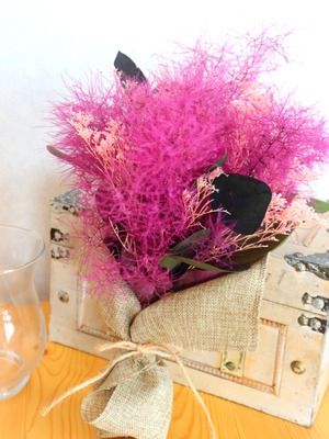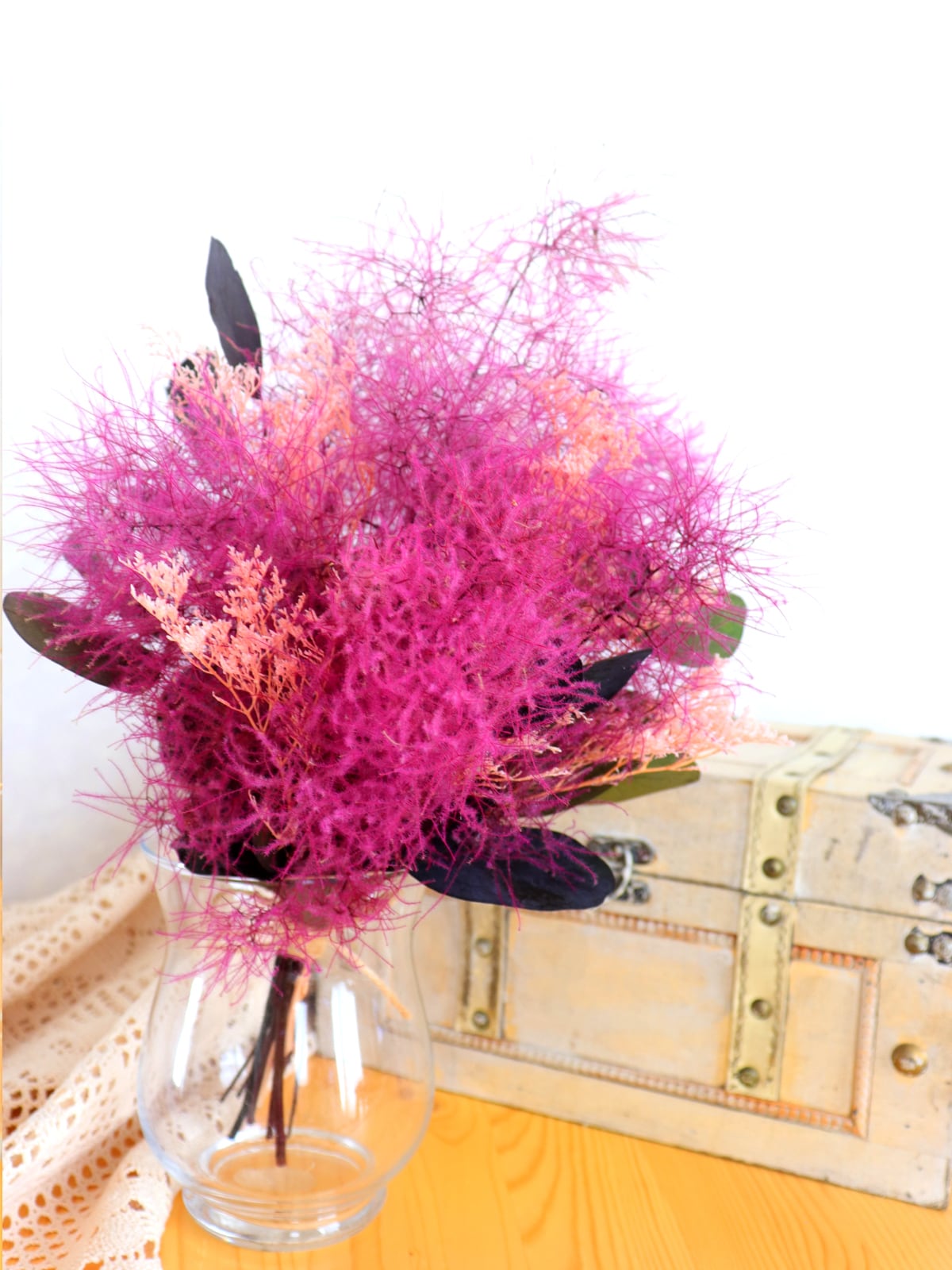 デザイナーも大好きなこのスモークツリーのプリザーブドフラワーを、同じくプリザーブドのユーカリとカスピアをバンチスタイルにしてみました。